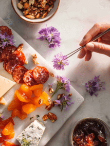 - Drizzle a few drops of herbed balsamic glaze over the cheeses and fruits for an aromatic, sweet finish.