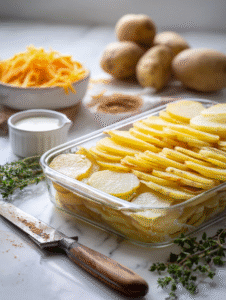 - Baking dish: To hold and bake the layered potatoes evenly.