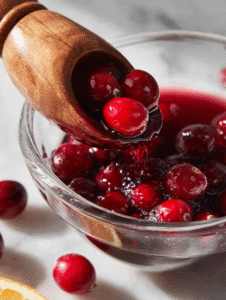- Cranberries should be bright and slightly bursting, not mushy.