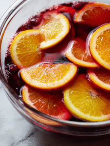 - Slice the orange and lemon into thin rounds, then add both to the mixture, allowing their zesty oils to infuse the wine.