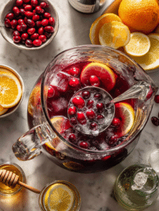 The unexpected cranberries bring a seasonal twist that still feels classic. It’s simple enough to make early and looks stunning in the glass. Plus, the spicy, tart flavor keeps everyone coming back for seconds—no matter how chaotic the night gets.