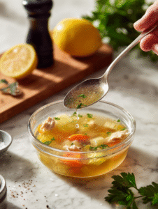 - Serve the healing chicken soup hot, garnished with extra parsley and a lemon wedge if desired. Enjoy its comforting aroma and soothing texture.