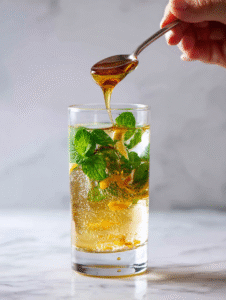 - Add the sweetener (honey or simple syrup) to the mixture, stirring well until fully integrated and the drink is slightly sweetened to your liking.
