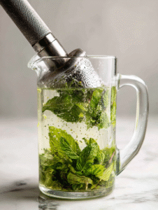- Use the muddler to gently crush the fresh herbs in the pitcher, releasing their fragrant oils and adding herbal brightness.