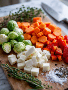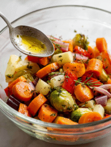 - Fresh herbs (thyme, rosemary): Fragrant, they infuse the vegetables with a festive aroma.
