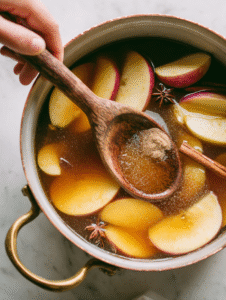 Step 4: Let it simmer for about 20 minutes, mashing the apples occasionally to extract more flavor, until the house fills with a spicy, fruity aroma.