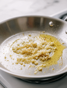- Add the minced garlic to the skillet and sauté for about 30 seconds until fragrant, listening for the subtle sizzle and watching the garlic turn lightly golden.