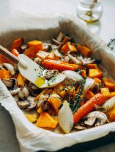 • Mushrooms: I love shiitakes for umami, but button mushrooms are a reliable, budget-friendly choice.: Their meaty texture and smoky flavor boost the roast’s depth.